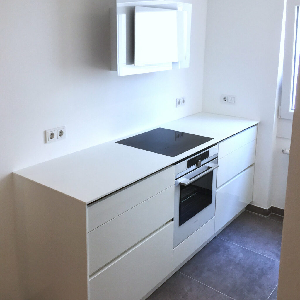 Komplett weiße Küche mit optimaler Platznutzung